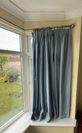 A bay window pole is a curtain pole designed to follow the angles or curves of a bay window. When fitted correctly, it allows curtains—whether eyelet or pleated with rings—to move around the bends. Bay Curtain Pole-Track with gliders suitable for pencil pleat, pinch pleat and wave headings.